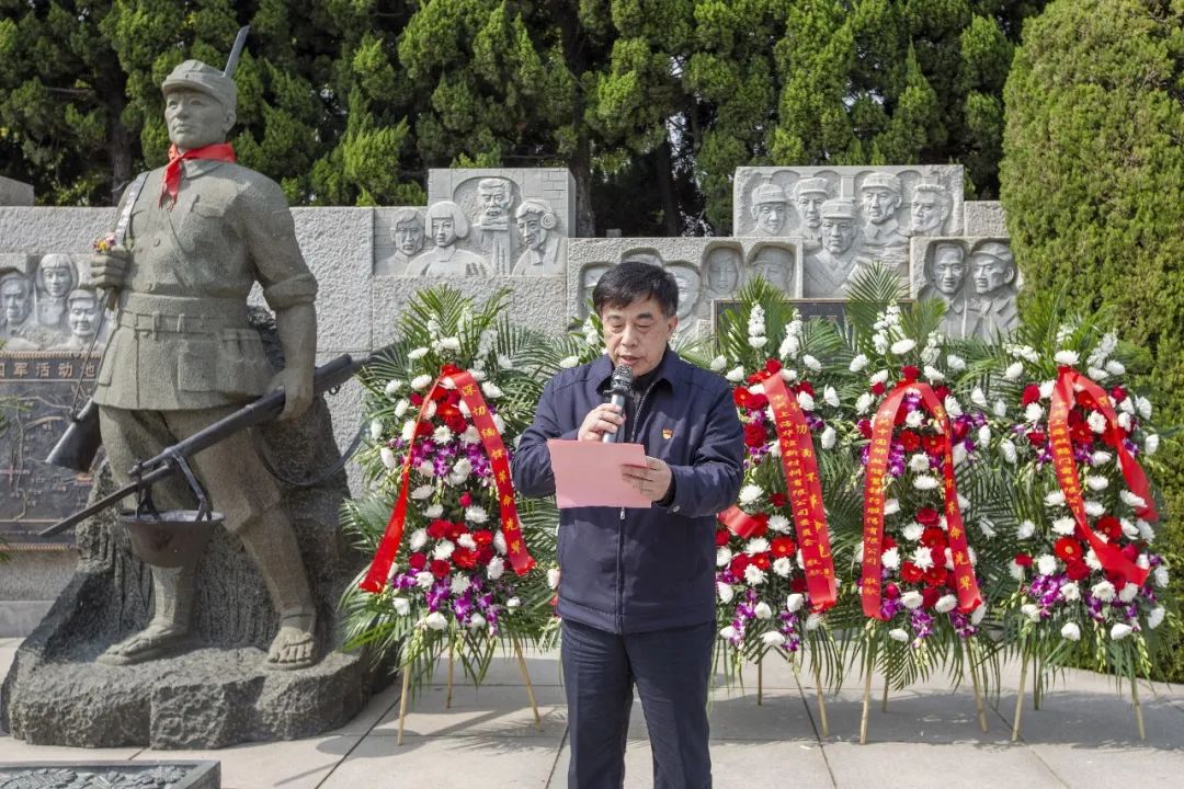 浦东新区企联副主席兼党建联席会议秘书长尤申诵读祭文,祭祀中国工农红军和新四军杰出的指挥员彭雪枫将军,以及所有为新中国解放英勇献身的新四军革命烈士。尤申指出,不管时代如何变迁,先烈们舍生忘死、不怕牺牲、为他人某幸福的高尚品德、大无畏的奉献精神万古长青,他们的光辉英雄事迹将彪炳史册,万古流芳!他们的精神将日月同辉,与江河共存!面临国际复杂的大环境,我们始终要坚定按照党的二十大提出“全面建成社会主义现代化强国、实现第二个百年奋斗目标,以中国式现代化全面推进中华民族伟大复兴”的总目标,在党中央的正确领导下,各级党组织要紧密围绕本单位的生产经营任务的实际,团结凝聚广大员工,坚持党建促经济,党建促发展,充分发挥党组织的战斗堡垒作用和共产党员的先锋模范作用,加快企业经济改革创新发展,努力创造出更快更多更高的经济效益,为浦东高水平改革开放、打造社会主义现代化建设引领区发挥出强大的力量。