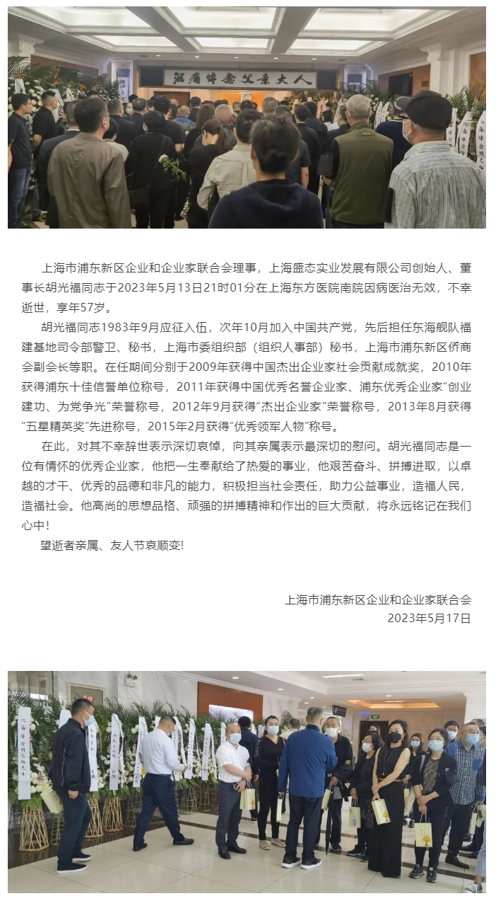 【讣告】沉痛悼念浦东新区企联理事胡光福同志逝世