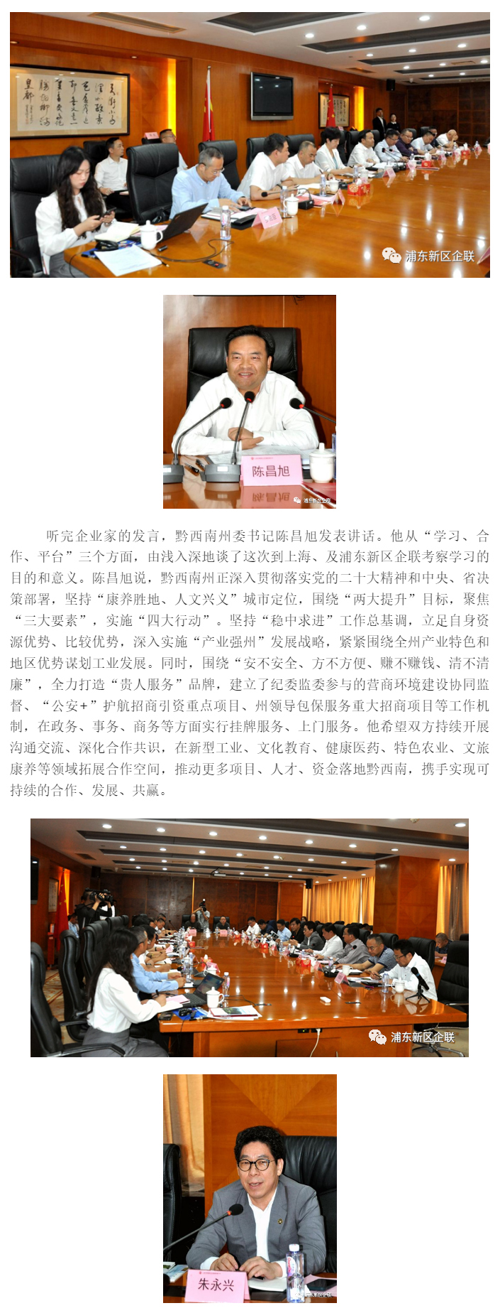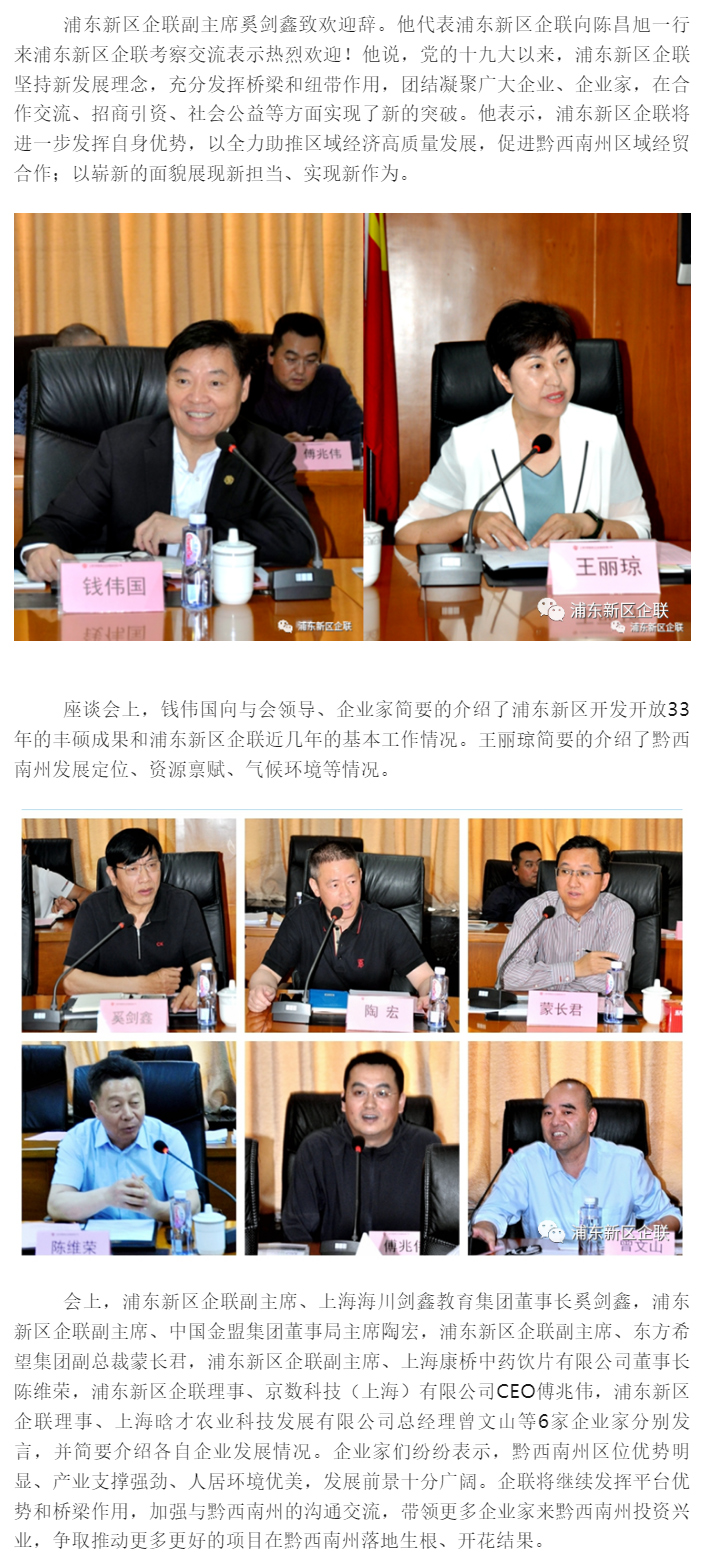 黔西南州委书记陈昌旭率队到浦东新区企联考察交流