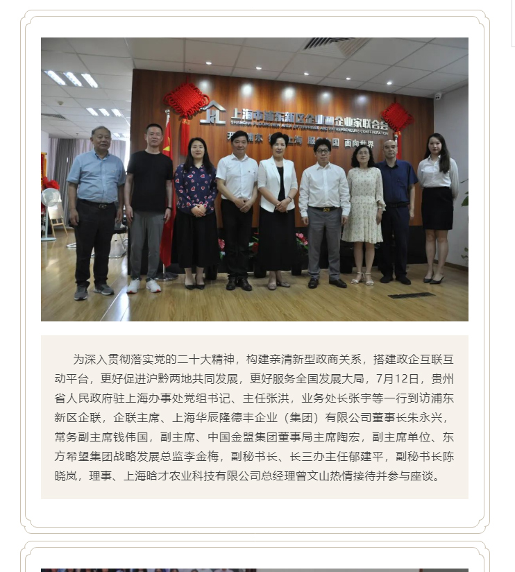 【企联】“同心同向齐奋进,凝聚发展大合力”---浦东新区企联接待贵州驻沪办党组书记、主任张洪一行